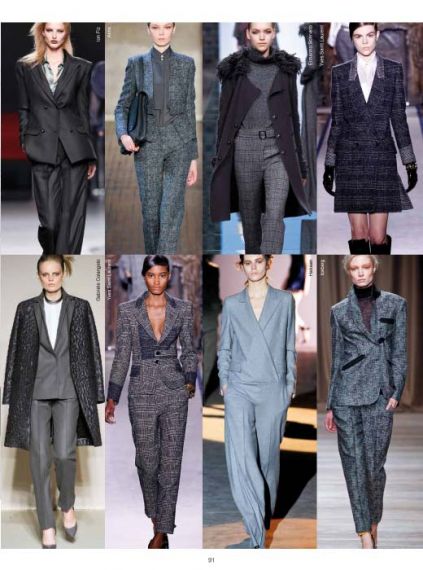 Leafing through the book and analysing the various themes, it will be obvious that the phenomenon of 'newstalgia' is investing all round in the female wardrobe; a mode of recovery of the past that does not reproduce it as such, but aims to bring historical garments into the spotlight with a still intact appeal, not undermined by time, reviewed in contemporary terms thanks to new research in materials and updated according to the taste of the moment. Here then appears a row of divine retro inspirations emerging from the days of Prohibition, up to the glossy protagonists of the glorious seventies who, along with references to the fashion of those years, bring with them the trends for 2012-13 and also the taste for the glitter of glam nights at the disco, where sequins and lamé were the basis of the social dress code. When the focus turns away from the trends of the past, it concentrates on the universe of the male and draws from it a heterogeneous inspiration, ranging from the review of 'boyish allure', to the country charms of western films, to then transcend the technological vision of a cyber-woman who has all the appearance of a futuristic fighter.